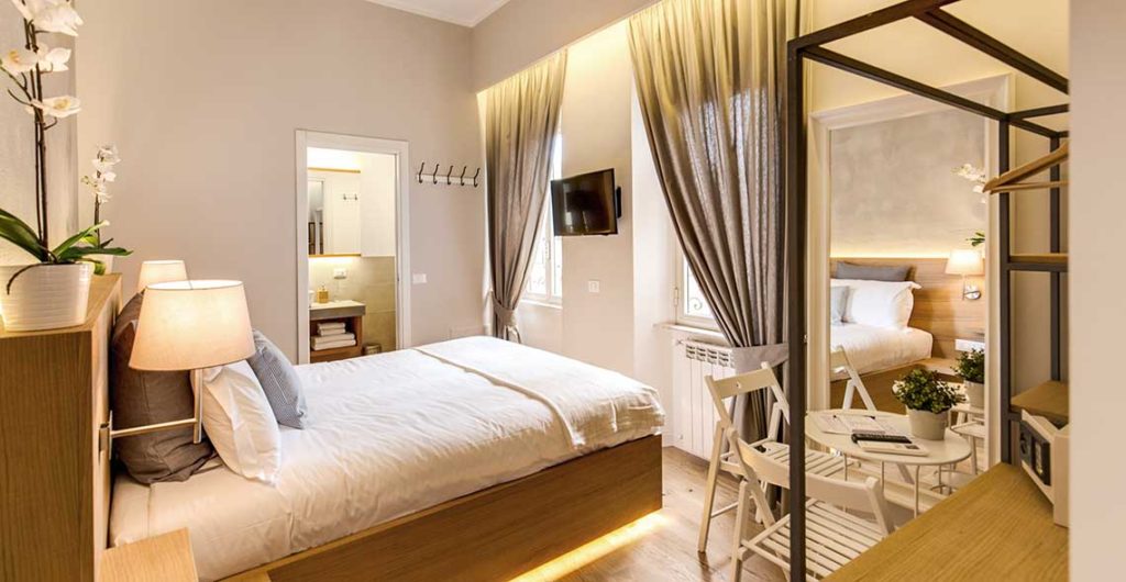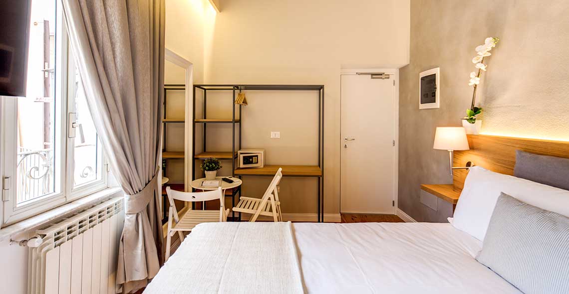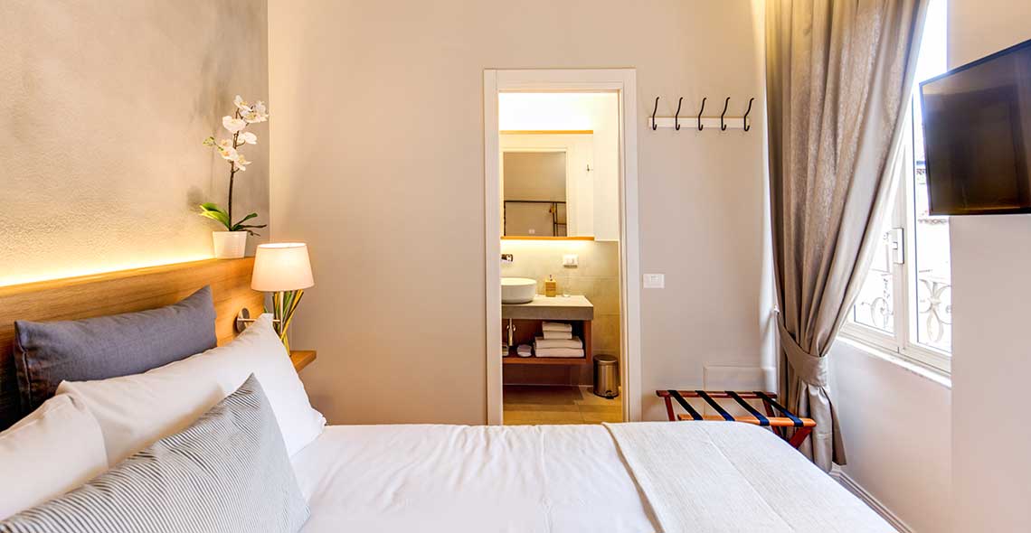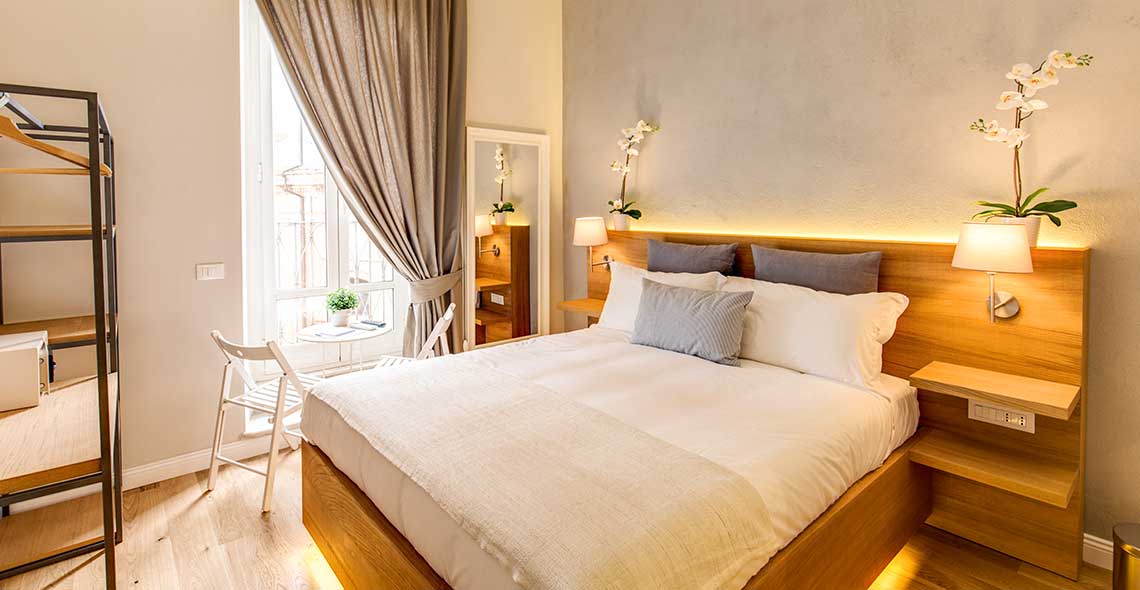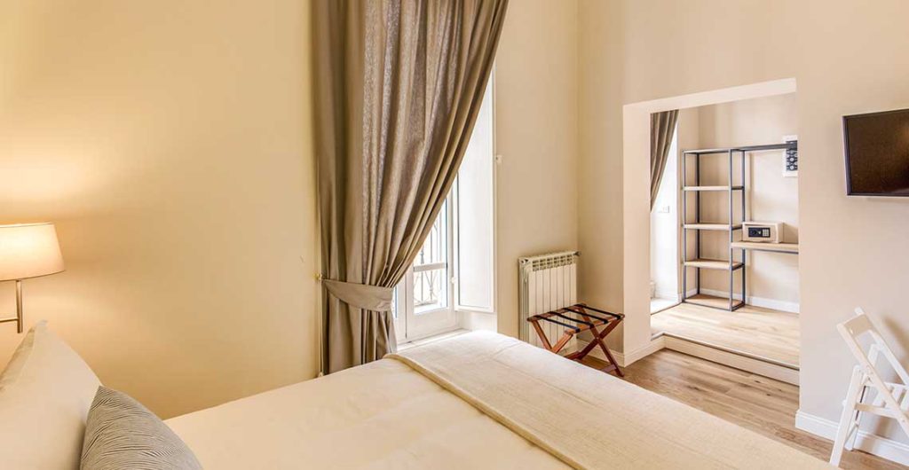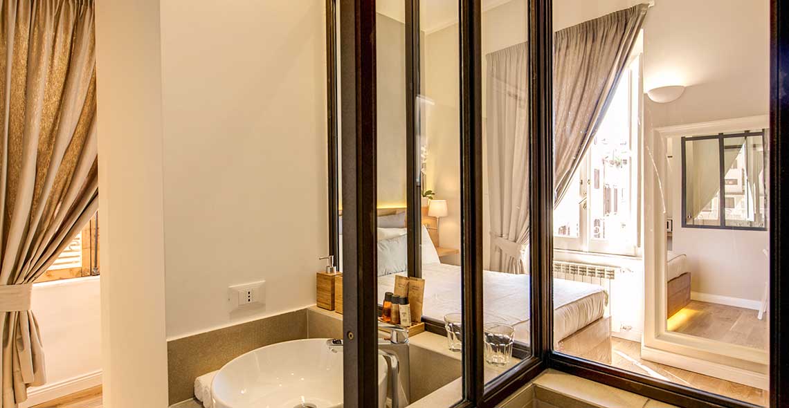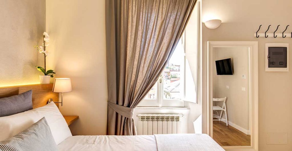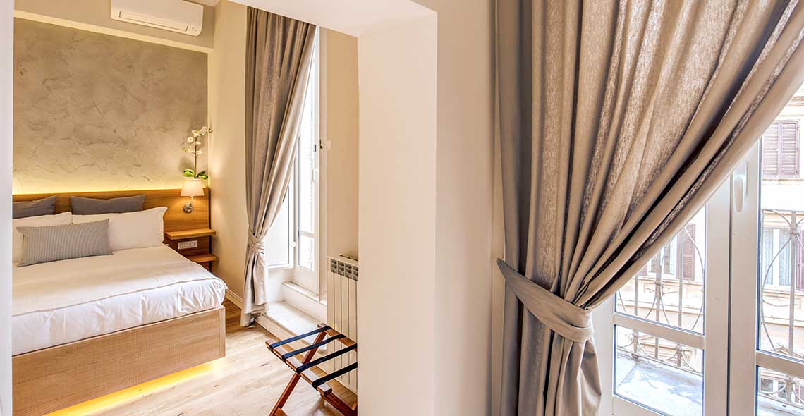 The Spanish Suite is composed of some suites that are characterised by a modern and particular design, a guarantee of high quality. In our deluxe rooms is possible to have a double room or twin beds (at the request) with a private bathroom, we have air conditioning and an area of 19 mq. Our rooms are perfect for those who want to stay in the historical center of Rome and who wish to have bigger spaces in the room, for a best comfort and a more satisfactory experience. The daily cleaning is included and free Wi-Fi is available in all our rooms.