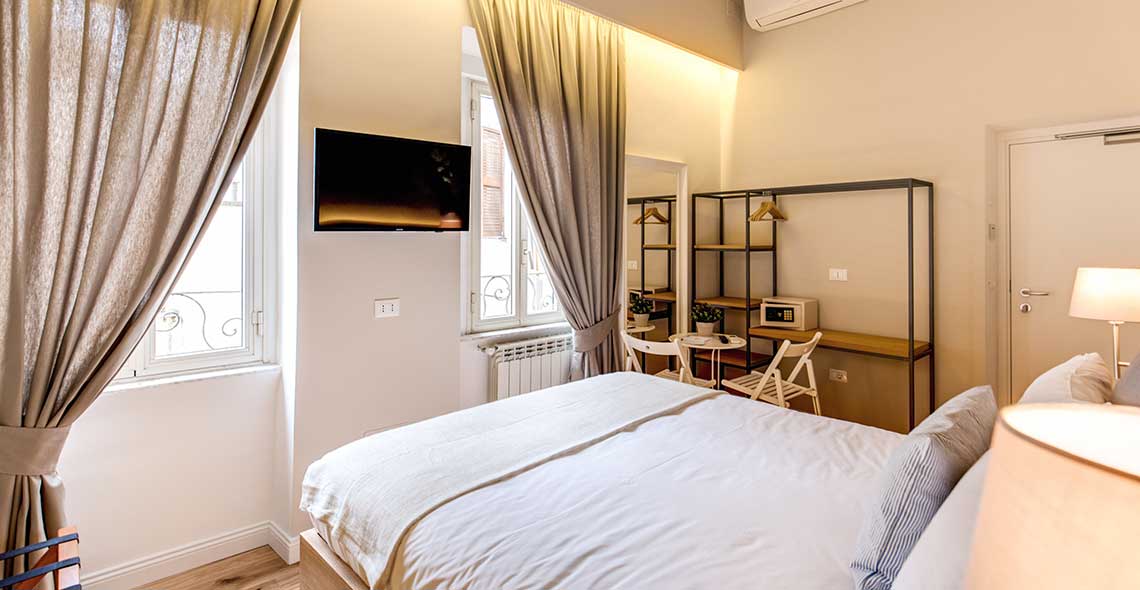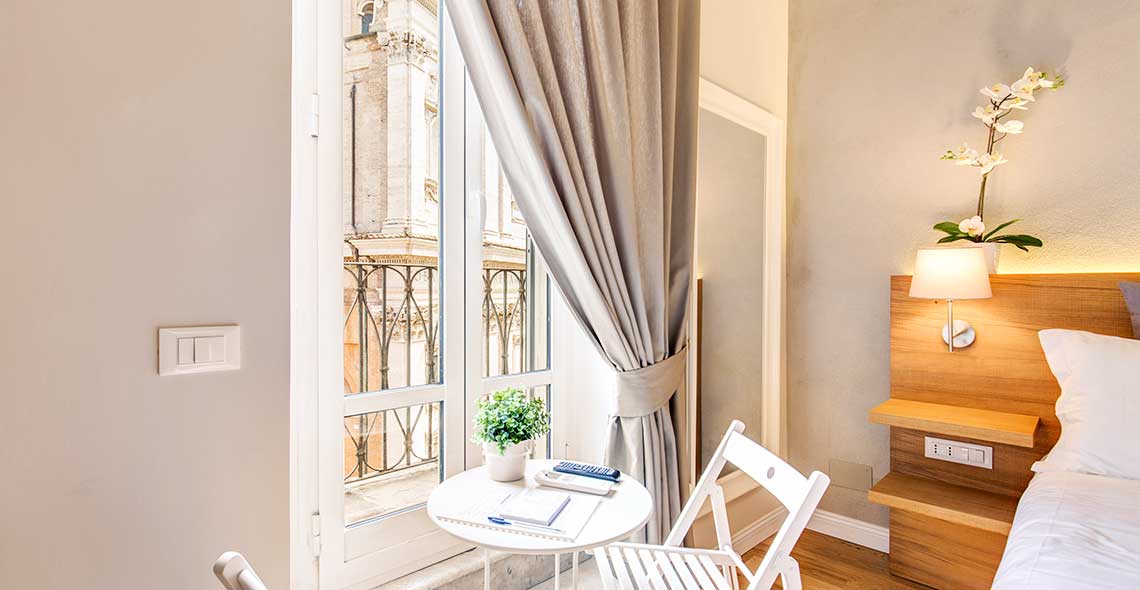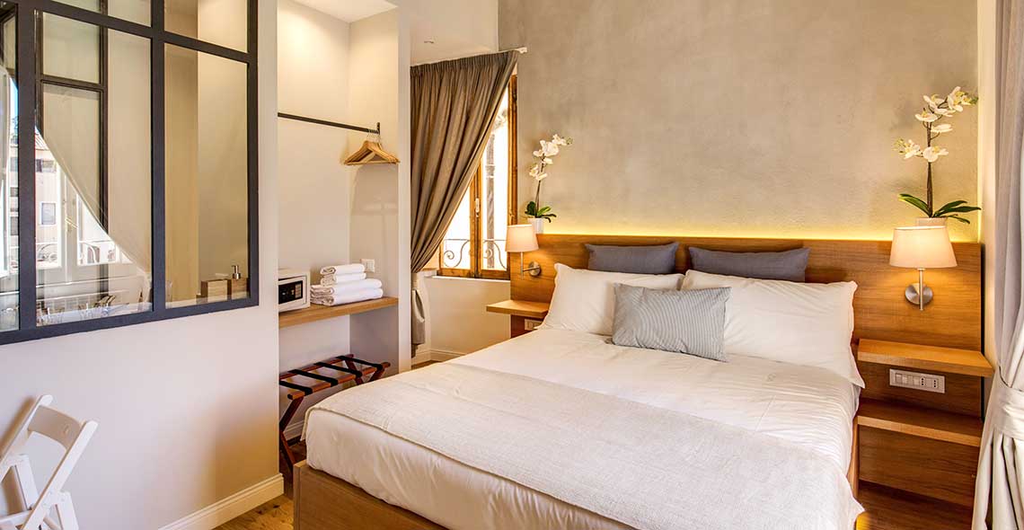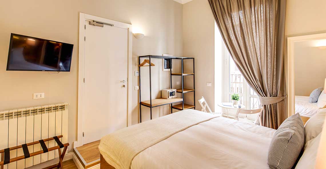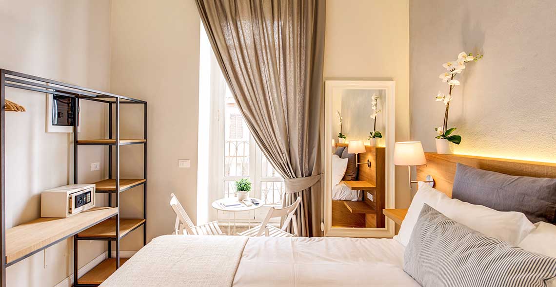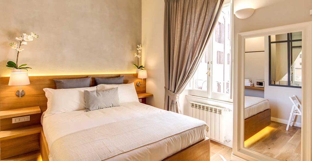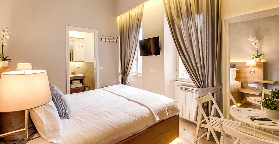 The Spanish Suite is composed of some suites that are characterised by a modern and particular design, a guarantee of high quality. In our deluxe rooms is possible to have a double room or twin beds (at the request) with a private bathroom, we have air conditioning and an area of 19 mq. Our rooms are perfect for those who want to stay in the historical center of Rome and who wish to have bigger spaces in the room, for a best comfort and a more satisfactory experience. The daily cleaning is included and free Wi-Fi is available in all our rooms.